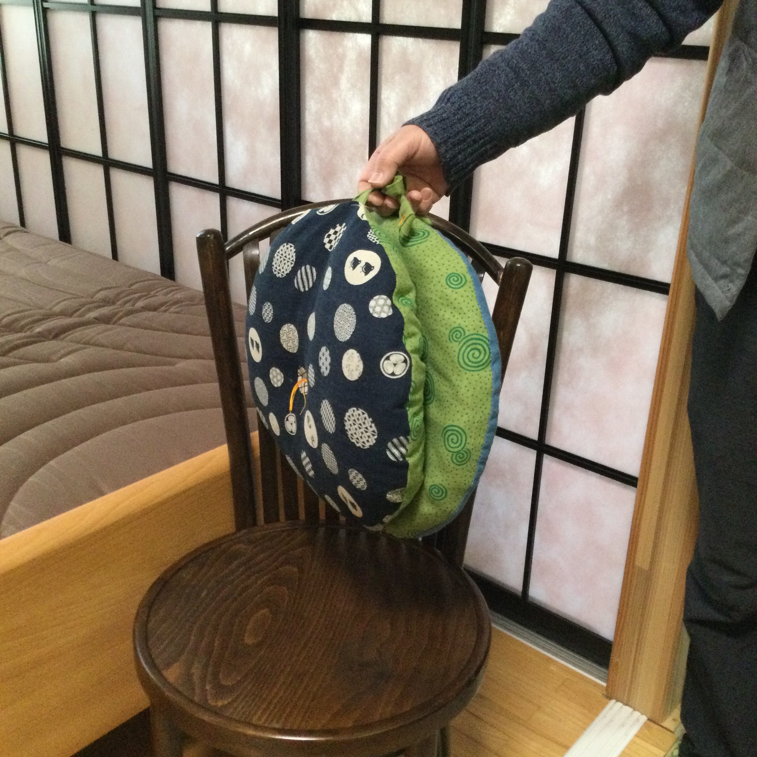 むすべばマクラに早変わりするので、昼寝、仮眠にも最適。